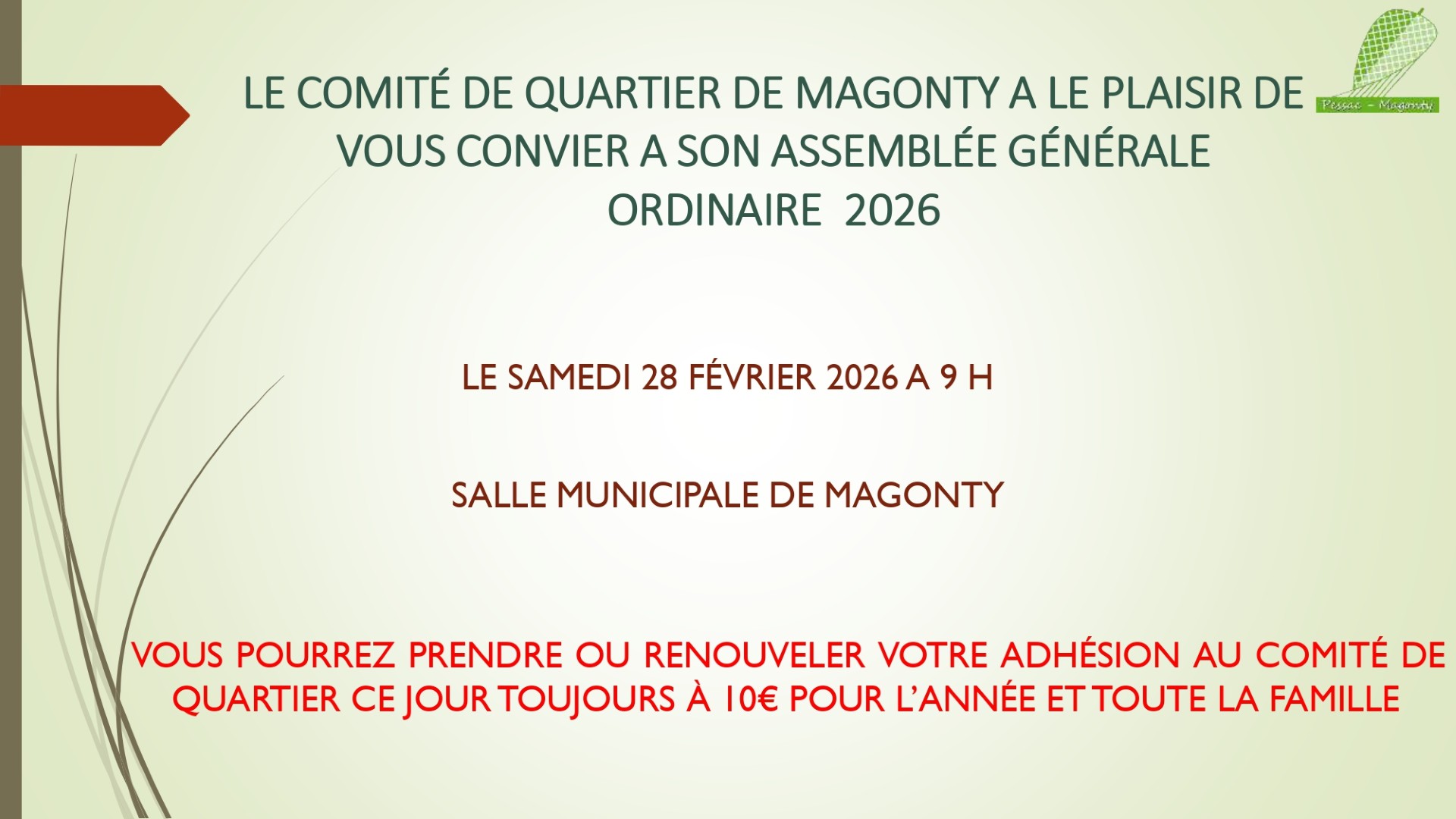 POUR L’ASSEMBLEE GENERALE DE VOTRE QUARTIER A LA MAISON DE QUARTIER