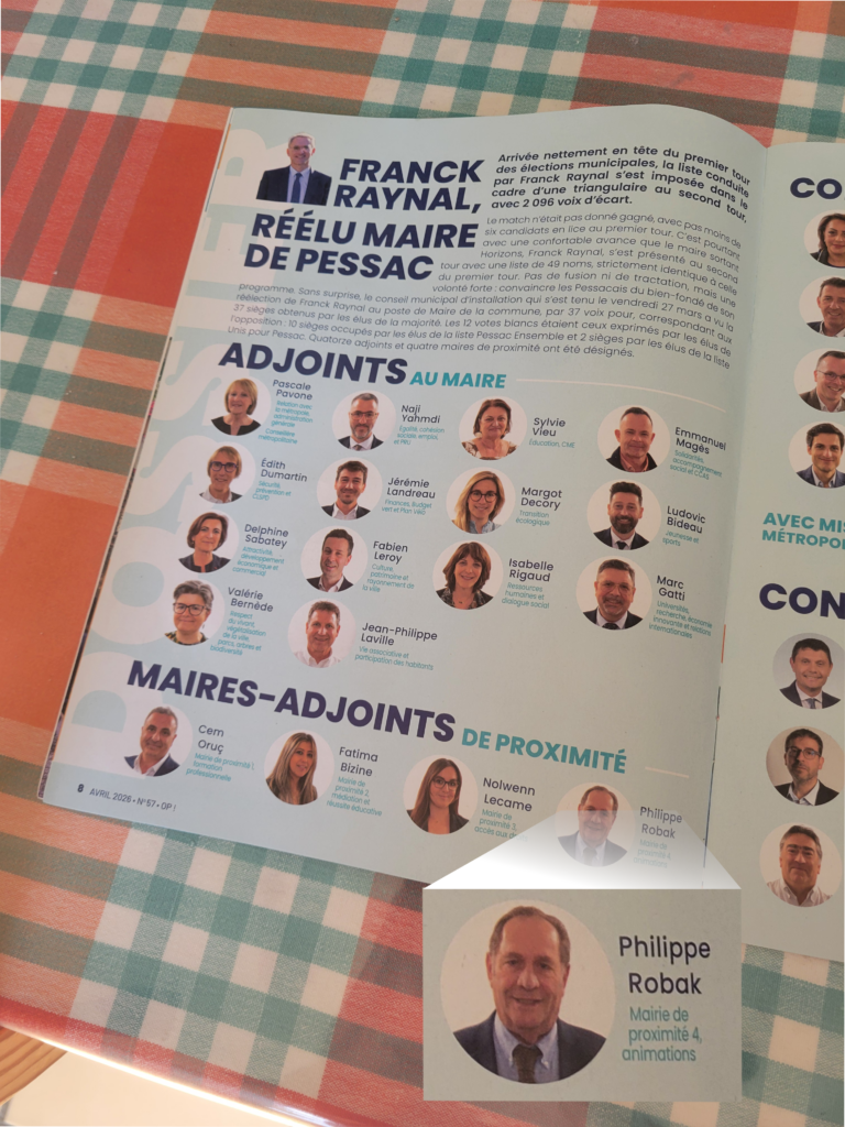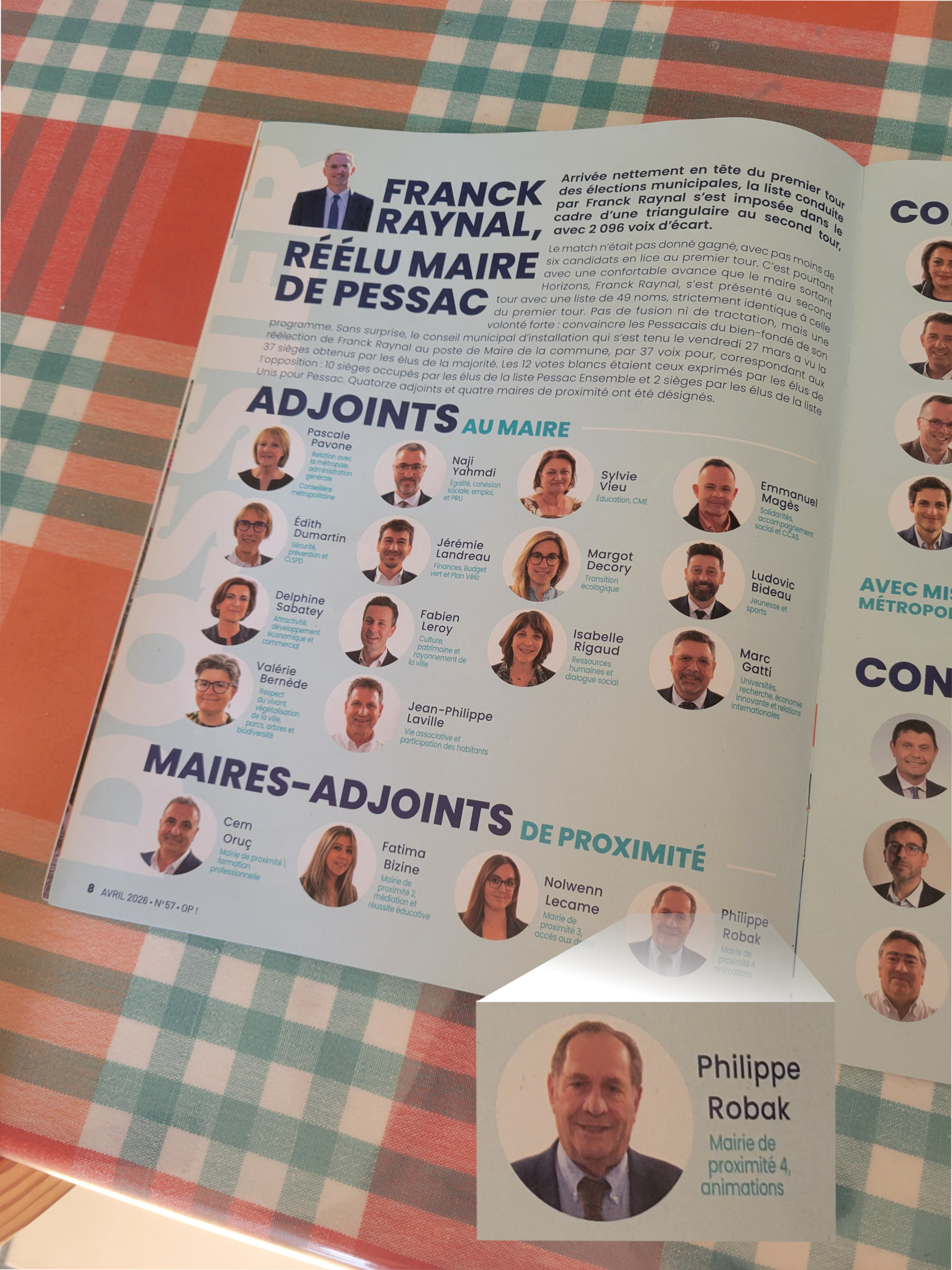 Dans le magazine OP de Pessac, vous reconnaîtrez sans doute notre nouveau maire adjoint de Magonty si vous avez déjà assisté à l’un de nos nombreux événements. Il s’agit de Philippe Robak.